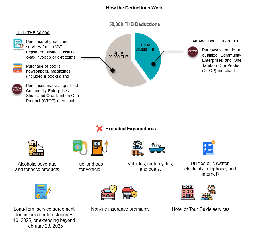 The Revenue Department has announced the popular tax incentives scheme, now known as “Easy E-Receipt 2.0” (formerly “Shop Dee Mee Kuen”), which offers individual taxpayers up to THB 50,000 in personal income tax deductions for 2025.