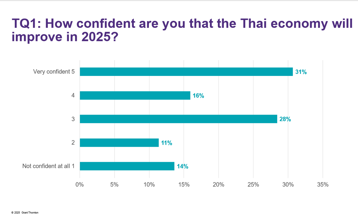 Against this backdrop, Thai mid-market sentiment remained remarkably optimistic, with 31% of respondents reporting they were "very confident" about economic improvement in 2025.