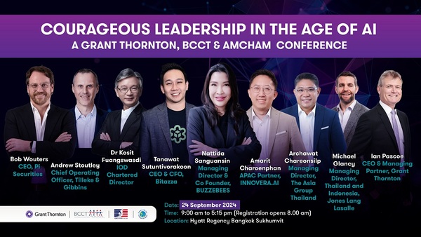 Bangkok, Thailand – On 24 September, 2024, Grant Thornton, in collaboration with the British Chamber of Commerce Thailand (BCCT) and the American Chamber of Commerce in Thailand (AMCHAM), will host a groundbreaking conference titled “Courageous Leadership in the Age of AI” at the Hyatt Regency Bangkok Sukhumvit. This full-day event is set to bring together over 300 senior executives, business owners, and emerging leaders to explore the critical intersection of leadership and artificial intelligence (AI) in today's rapidly evolving landscape. The conference will feature insightful sessions, including keynote speeches, panel discussions, and interactive workshops designed to equip leaders with the knowledge and tools they need to navigate and thrive in the AI-driven world.