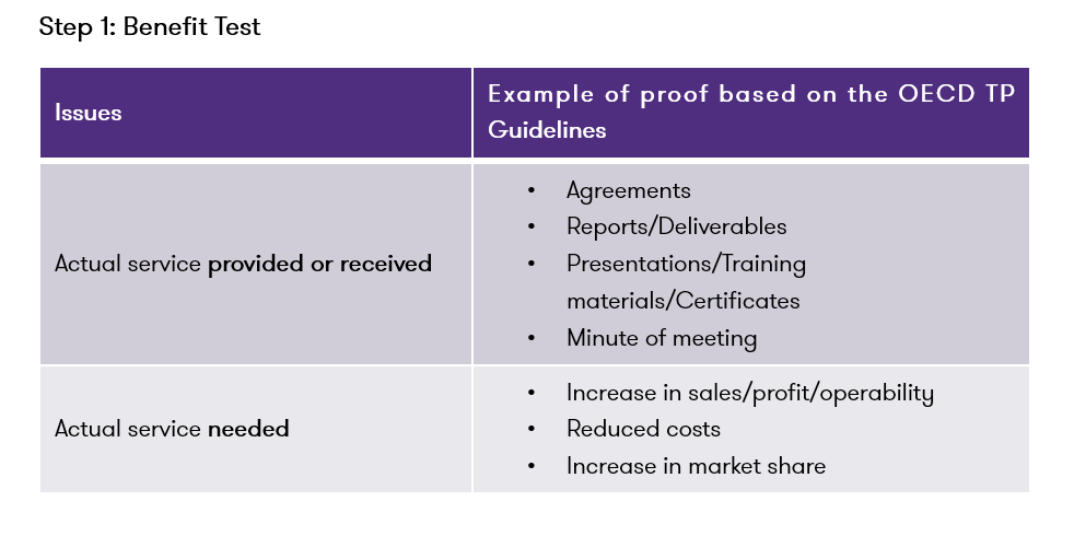 Last but not least, the evidence and documents from step 1 and 2 should be retained to demonstrate the appropriateness of intra-group services and keep available in the event of a tax/TP audit. If not properly justified, the company would face adjustments to revenue or expenses proposed by the TRD during tax/TP audit. The company could face additional taxes and possible surcharges/penalties.