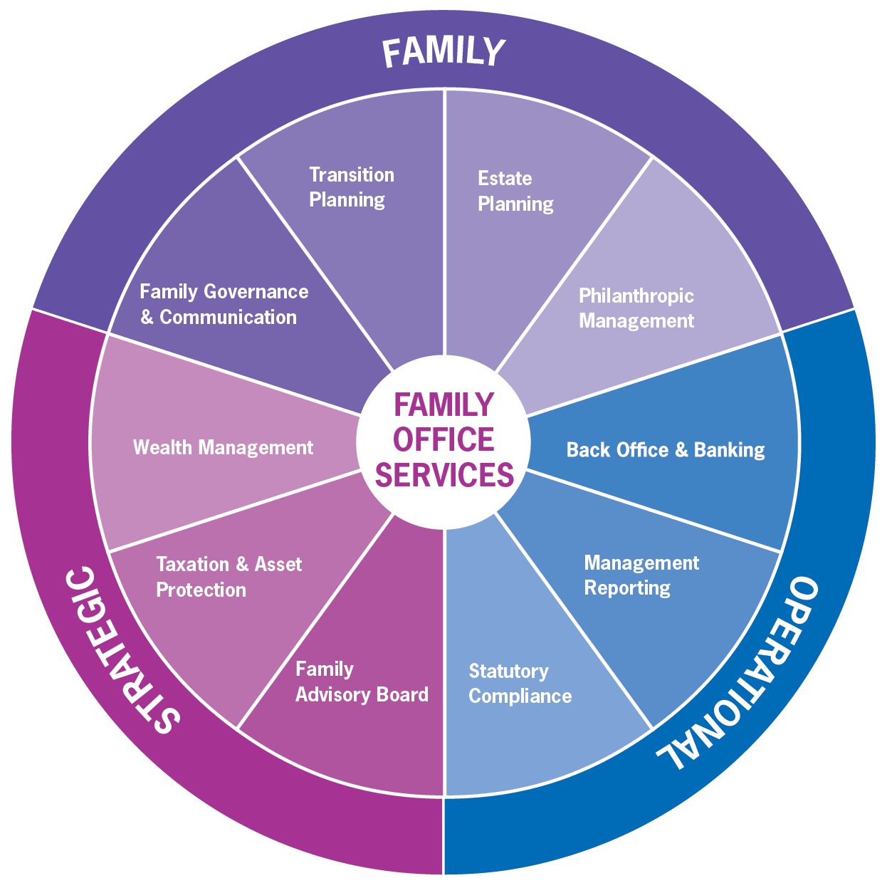 We are a holistic practice encompassing the key areas of family, strategic and operational services, as illustrated in the table below.